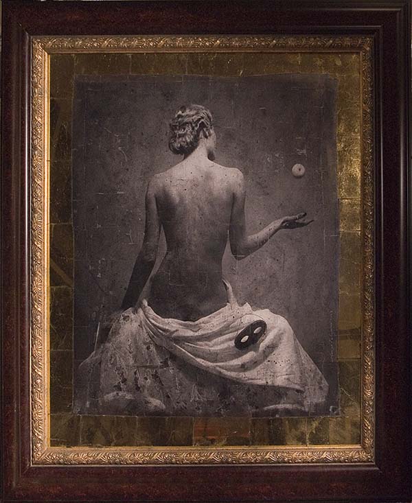 Collées sur des planches, les photographies sont recouvertes d’un vernis et produisent la sensation d’être des toiles anciens de maîtres. La frontière avec la peinture devient floue.